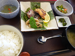 | 2日目も昼食の試食をいただきました。塩分、カロリーなどがコントロールされた上で「おいしい!」と大好評でした。 |