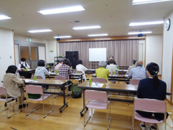 2日間で3箇所の自立型有料老人ホームを見学する講座です。まずは現地において「見学のポイント」について解説し、グループに分かれて施設内を見学しました。見学後の質疑応答も活発で、すでに基礎講座を修了されている方が対象でしたので、専門的な質問もありました。 |
